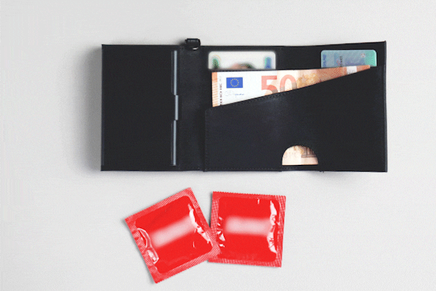 Der erste Geldbeutel mit Kondometui